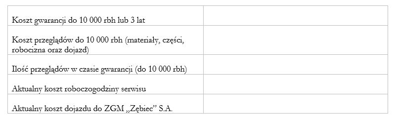 ZGM „Zębiec” S.A. zastrzega, że złożenie oferty nie stanowi zobowiązania do udzielenia zamówienia.